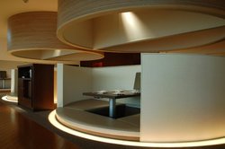 青を基調とした落ち着いた雰囲気の店内